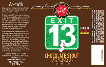 New Jersey craft beer institution, Flying Fish, brewed a beer with chocolate as part of their now-concluded Exit series: Exit 13 – Chocolate Stout. Unfortunately this is a “retired” beer of the Exit series, but hopefully the fine folks at Flying Fish will bring this beer back into circulation as they’ve done for a couple of the beers in the series. I may have more to say about this brew in the future.
