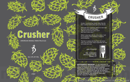 Fans of small, independent breweries have known of the legendary Alchemist for years. It is basically the brewery that helped to give birth to the popular New England IPA style of beer. Brewer/owner John Kimmich’s most famous creation, Heady Topper, is one of those whale beers that every beer geek wants to try at least once and I was fortunate enough to share a can last Fourth of July with a friend. Fast forward a year and another friend happened to have just visited Vermont and he brought back some goodies from the Alchemist, including this Double IPA – Crusher.