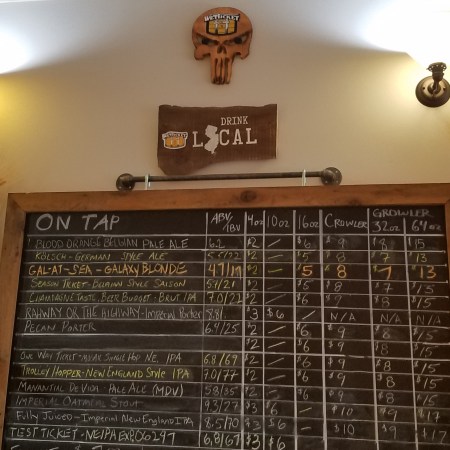 The state of beer in the State of New Jersey is pretty good. As of this writing, we are near 100 breweries in the Garden State. I’ve got two solid breweries very close where I live now (Conclave Brewing and Lone Eagle Brewing), and as of 2 years ago, a really good brewery close to the city in which I grew up (Linden, NJ) – Wet Ticket Brewing in Rahway, NJ. Wet Ticket recently celebrated their second anniversary. I didn’t make it to their celebration, but I stopped in and met my parents before celebrating their anniversary a couple of weeks ago. I also visited Wet Ticket shortly after they opened in 2017. Let’s just say I don’t think I’ll let 2 years pass between visits, or at least having some of their beer.