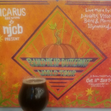 Speaking again of collaborations, in what has become an annual tradition, Jason brews an “anti pumpkin” beer with Mike Kivovitz of New Jersey Craft Beer. The beer is Build Me Up Butternut which is a porter brewed with Mike’s butternut squash soup made with some chipotle and guajillo peppers. The release of this beer in the taproom is what prompted my second visit to Icarus Brewing. The taproom was pretty tightly packed as was the secondary taproom where the band was playing. I also had a delicious, perfect every day beer when I first arrived, Life in Helles a beautiful Helles Lager. I spent most of the night talking with Mike and his friends and my friend Matt, the new taproom manager at Icarus. It was a great night, with bands playing and quite a lot of people hanging out. In other words, just about everything you’d want in a brewery visit – good beer, good friends, and good conversation.