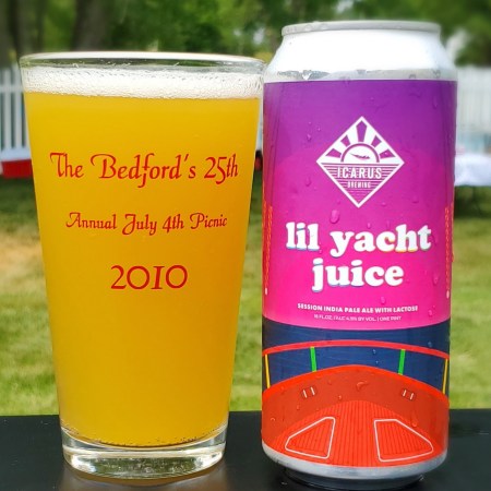 It has been a bit since I featured an Icarus beer here at the Tap Takeover. “Lil Yacht Juice” is the scaled down version of Icarus’s flagship IPA, “Yacht Juice.” Whereas Yacht Juice is 8%, “Lil” is 4.9%. Despite the lower ABV, “Lil” doesn’t sacrifice any of the flavor with its blend of Mosiac, Citra, and Columbus hops. The beer is cloudy like most New England IPAs and is probably the best “Session IPA” I’ve ever had (not that I’ve had all that many of the style) and a beer that was a perfect start to our annual Fourth of July party.