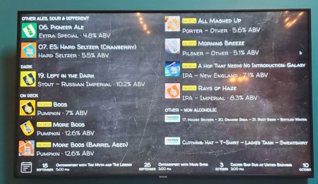 I knew I wanted to try a couple of their lagers, so the Helles Lager, Long Days Short Years was first on the paddle, you can read more about that in my review. Next up was Turkey Town Lager, Untied’s interpretation of Märzen/Oktoberfest. Good stuff, nice malt with a low-level of sweetness. Beer number three was one of the beers that brought some positive attention to Untied, Knucklehead Hall of Fame, a double New England IPA. The beer has a great hop balance between tropical sweetness and hop bitterness, I think I liked it so much because there was no Mosaic hops in it. Last on the paddle was Pioneer Ale, an Extra Special Bitter, which was OK. Not my favorite of the bunch (one of a group always has to fit that role), but I’m not the best judge of that particular style.