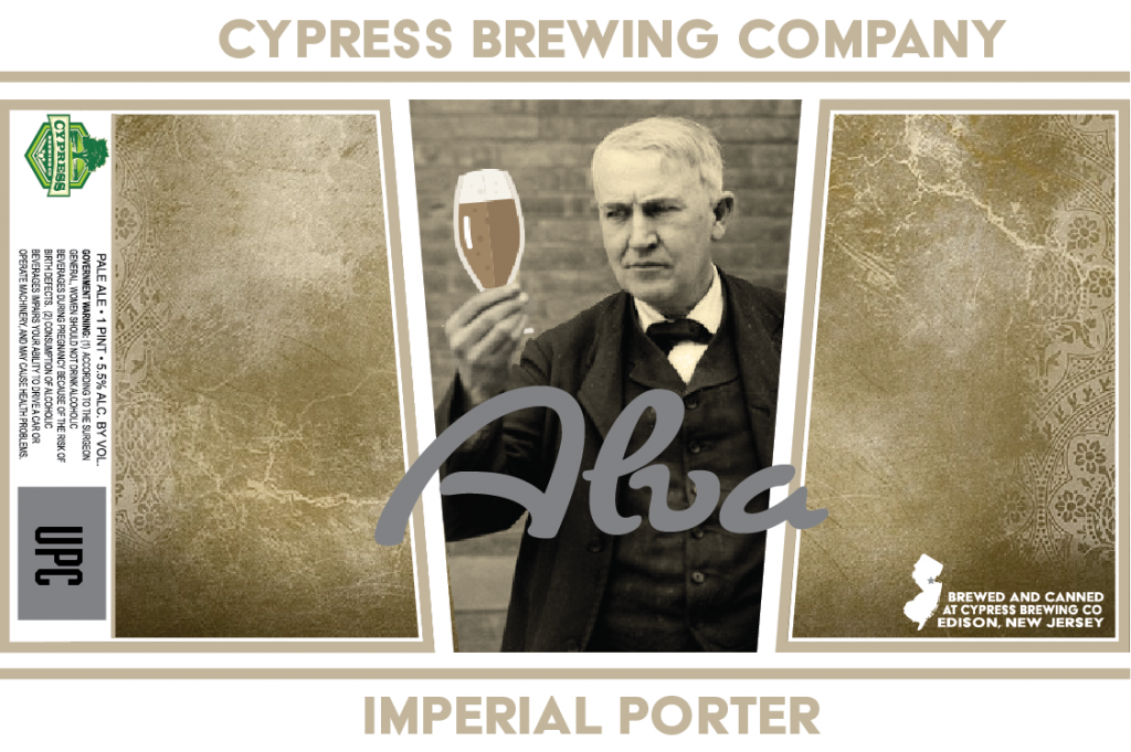 The name “Cypress” is the street where Kijowski lived, though the brewery has played off the 90s Hip Hop group Cypress Hill for at least one of their beers – “Insane in the Grain” pays homage to the great Cypress Hill song “Insane in the Brain.” That song was in constant rotation in my Fraternity’s basement at Rutgers University in the mid 1990s. As the brewery is in Edison, named for inventor Thomas Alva Edison, Cypress pays homage with some of their beer names, including Alva, an Imperial Porter. This link to their full beer list: http://cypressbrewing.com/beer_type/all-beers/, provides the names, description, and some of the interesting can art of many of the beers in their portfolio.